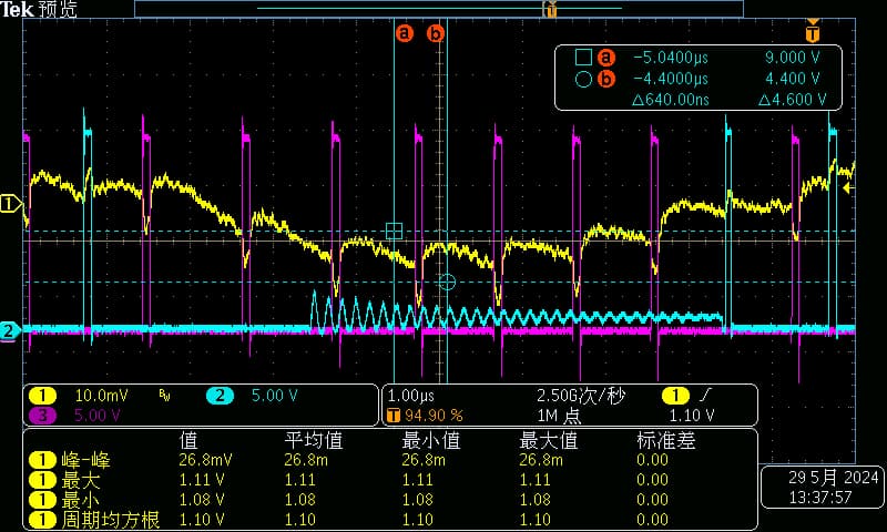 3.可以帮忙说明下测试条件么, 是恒定的电流还是电流在切换, 另外这个时候输出电压是固定的吗