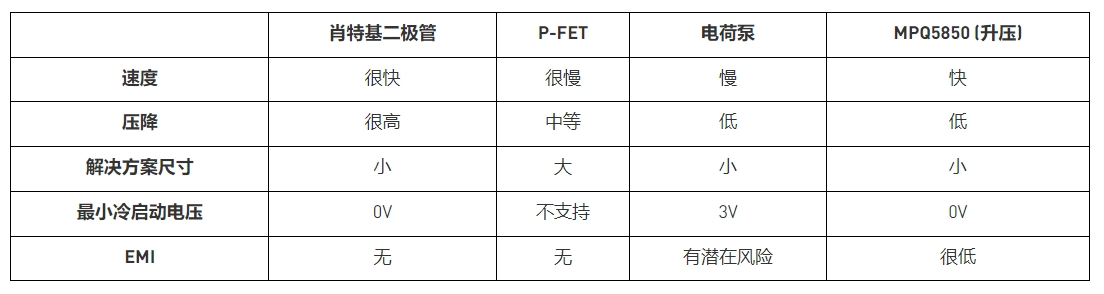 总之,电荷泵解决方案具有较低的整体BOM要求,可以降低成本,但只推荐用于小电流应用;对于大功率应用,其容量不足。