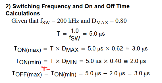 这样的话,使用L=VoutToff/ΔI计算Lmin,应该是Lmin=(Vout+Vd)(Tsw-Ton(max))/ΔI=(Vout+Vd)*(Toff(min))/ΔI,但是CS51013规格书中使用了Toff(max)…