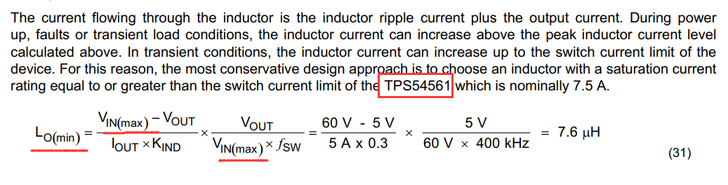 TI规格书中的问题您可以和TI的工程师确认。对于电感感量计算,按这个公式计算即可: 可以取输入电压典型值来计算,或者取输入电压范围的中间值