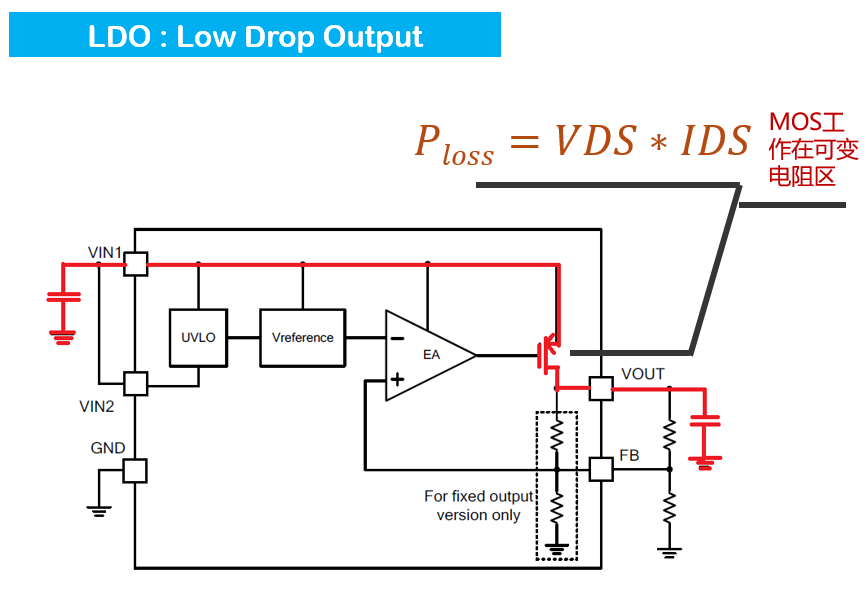 LDO是线性稳压器,输入和输出通过一个工作在线性区的功率管连接,只能用作降压,输入和输出之间的压降全部落在芯片的功率管上,且输入电流等于输出电流,其效率等于输出电压除以输入电压,是比较低的。这样的话在输入输出压差较大,电流又不小的情况下,开关管上的损耗就非常大,这会使得芯片的温升很高。这种高压差,电流大的情况下LDO是不适用的。除此之外,需要升压和升降压的场合LDO也不适用