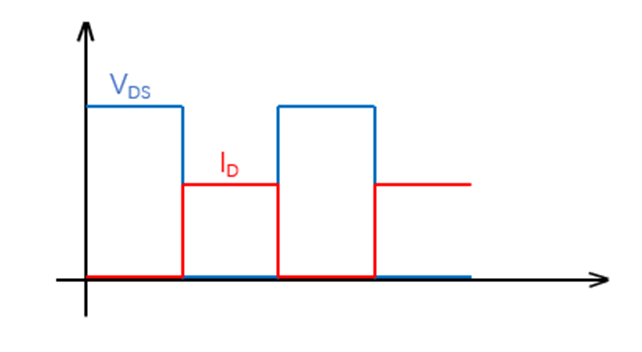 两种控制模式都是在控制MOS管的通断,那么为何会有效率的差异呢?如下图,理想状况下,当MOS管开通时VDS等于0,此时虽然有电流通过,但是其消耗功率P=VDS*ID=0。
