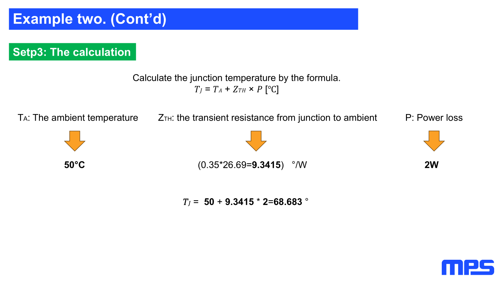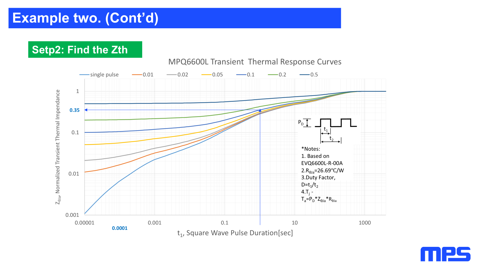 最终也是通过公式来计算的。假设环境温度50°C, 脉宽1s,占空比10百分,功耗2w对应的一个结温;