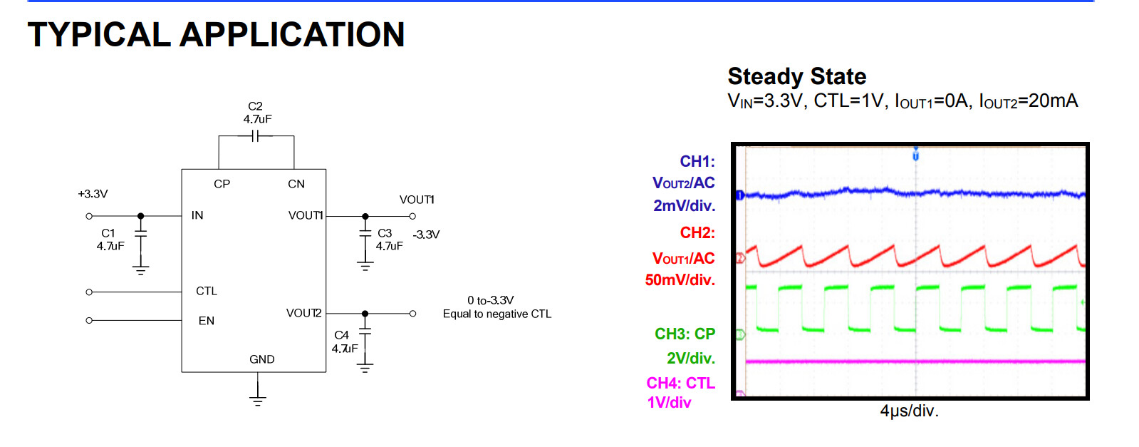 不建议在 Vn 和 - Vout 之间安装电容器。如果安装了这样的电容器则可提供从 Vin 到-Vout的交流路径。当 Vin施加到电路时,从 Vin 到-VouT的电容上的这个 dv/dt 会产生一个必须返回到地的电流(输入电源回路),才能完成其循环。该电流可能流经内部低侧 MOSFET 的体二极管和电感器,再返回地。流经体二极管会将 VOUT 引脚拉至低于IC的 地,超出其绝对最大额定值。