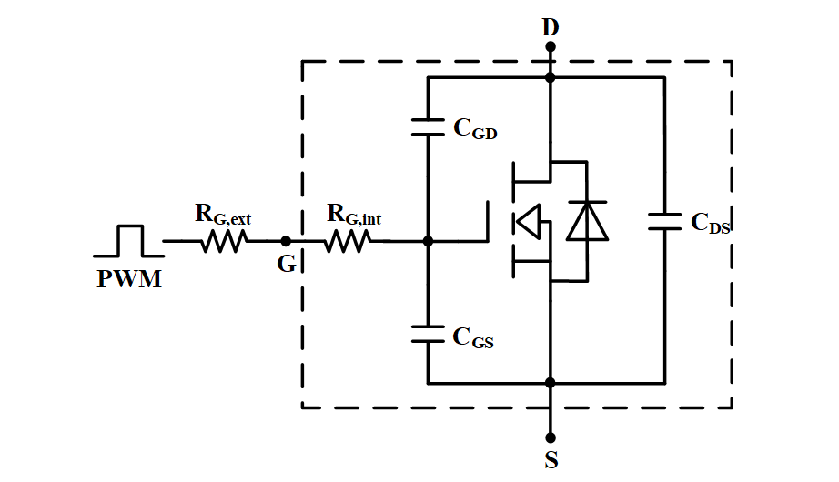 考虑寄生电容和栅极电阻的MOSFET原理图: