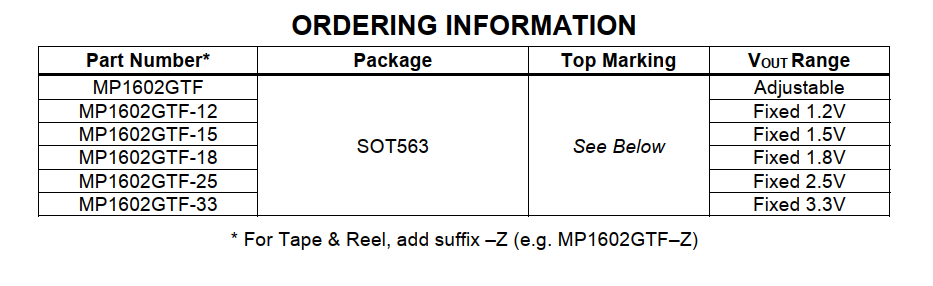 求教MP1602GTF-18-Z和MP1602GTF-Z区别是什么?