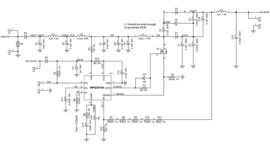 然后上图就是大概的说明,值得注意的是,由于输出电压高,所以反馈电阻部分采用了多颗电阻串联(因为单颗电阻的耐压值有限)。最后附上这个电路的BOM表原理图gerber的地址:https://www.monolithicpower.cn/mpq3910a-reference-design-high-voltage-boost-for-apd-in-lidar-applications