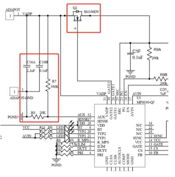 将下图红框中的器件去掉,AUX、VADP接到PGND即可