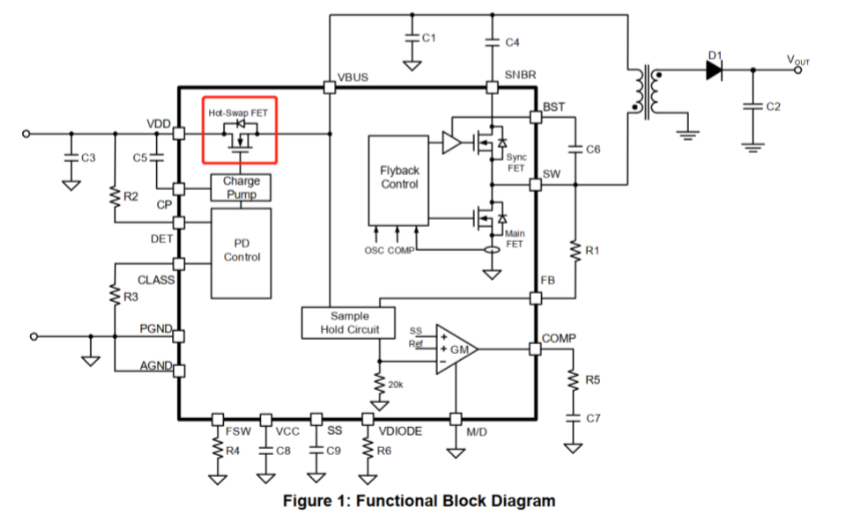 PD包含两部分,一部分是POE协议控制部分,用于与PSE握手使得PSE产生48V(典型值)输出电压;另一部分是功率转换部分,将48V转换为需要的电压。