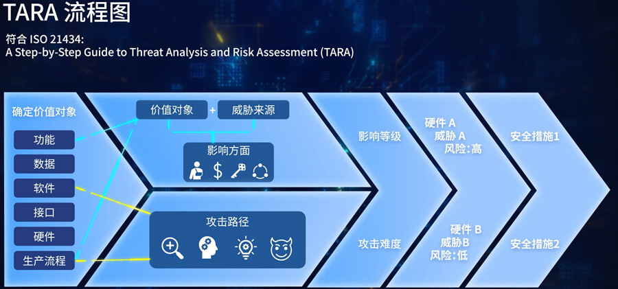 ISO21434 建立的网络安全风险评估流程,我们简称为TARA,主要分为4个步骤: