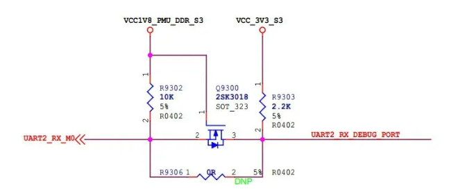 先抛出个问题,就是**为什么下图这个电平转化电路的上拉电阻一个选了10k一个选了2.2k?**如果您想不明白的话,就继续往下读吧,相信您读完也就明白了: