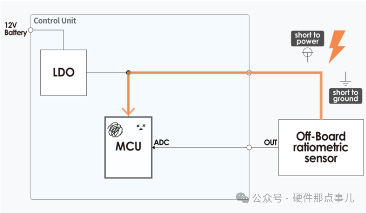 但是对于汽车电子应用场景,ECU板子经常需要给外部传感器提供5V供电,而这个5V供电和MCU的5V供电一般不是同一个LDO提供的,为什么呢?如果用同一个LDO供电,那对外供电的5V输出线束如果对地或电源短路,那MCU的电源也会被干没了。