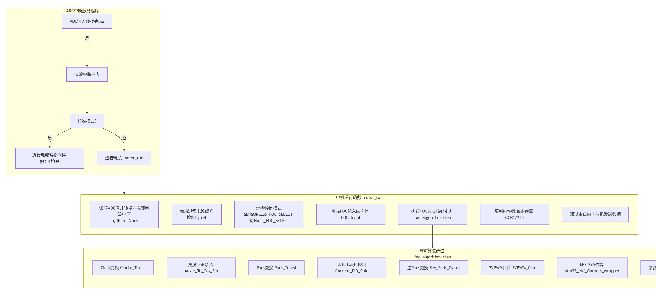 下位机采用Keil MDK5设计,实现FOC电机驱动、相电压电流采集、霍尔传感器信号采集、PID算法、速度环、电流环。