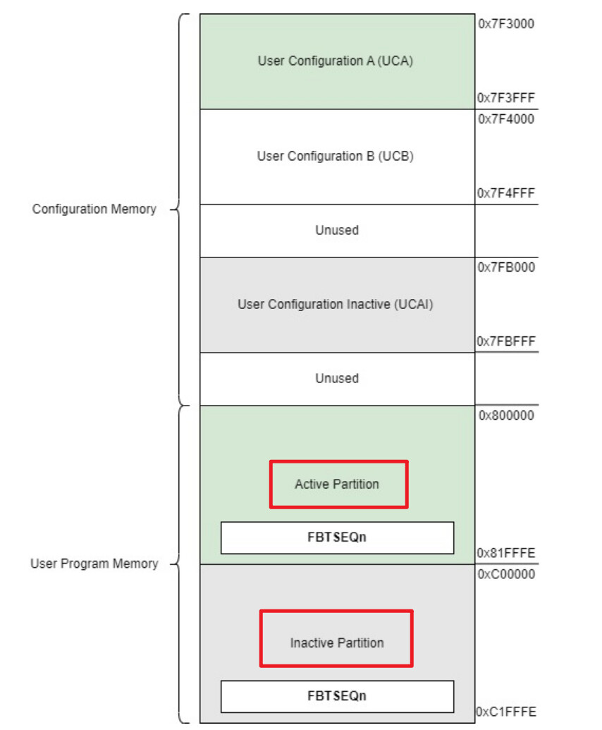 我们将DSP的FLASH划分为两部分,一部分作为活动区,另一部分作为非活动区,示意图如下所示。要升级的程序会先写入到非活动分区,DSP会根据设置的BTSEQn大小和BOOTSWP命令无缝切换到非活动分区,与数字电源环路相关的变量和函数优先级最高。