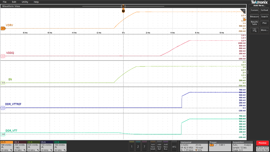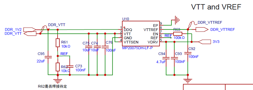 本次设计MP20075输入为VDRV=3.3V和VDDQ=1.2V,输出分别为VTT=0.6V和VTTREF=0.6V,分别给DDR的参考电压供电。