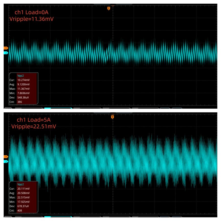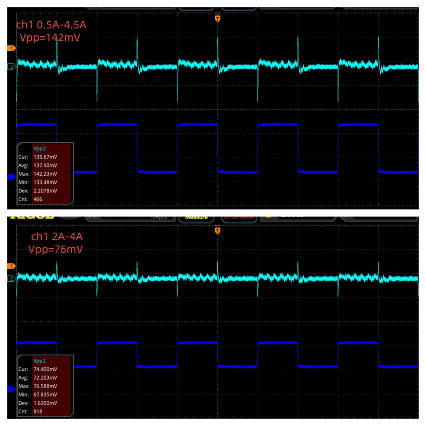 CHA通道提供了很小的输出纹波,在满载5A的情况下纹波只有22.5mV