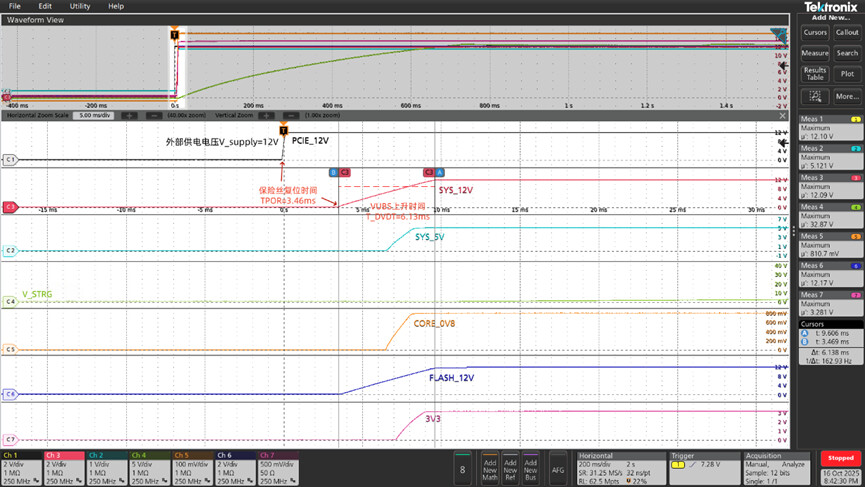 ②保险丝复位延迟时间设置TPOR=3.4ms,实测为3.46ms