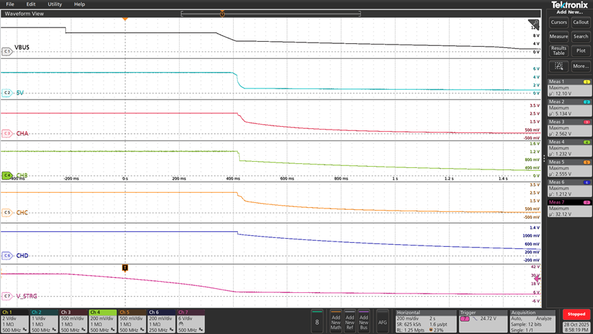 阶段2:输入电压从9.16V降低到7.75V,将VBUS彻底关闭。