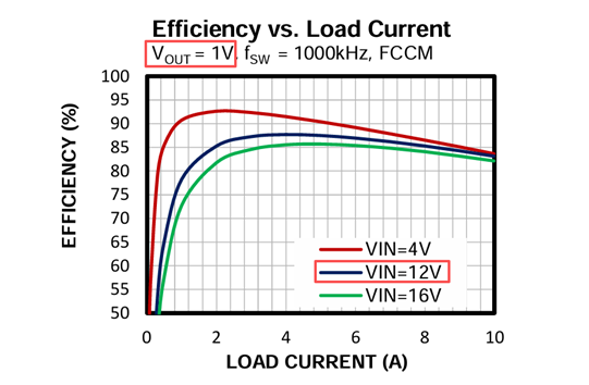 数据手册:VIN=12V,Vout=1V时的效率曲线