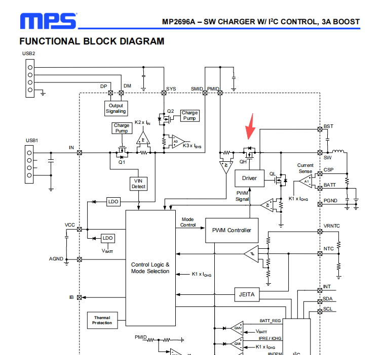 MP2696A 的路径管理不是NVDC架构,虽然SYS 的供电可以从Vin或者电池取,但是电池模式下,SYS需要启动BOOST 才能输出。