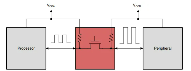MOS管的源极侧放置的信号电平应该比漏极的信号电平低,例如下图,源极侧放置电平为1.8V/0V,右侧放置电平为3.3V/0V。如果源极放的信号电平是高于漏极的信号电平,那么该电路将工作异常,不能正常电平转化。