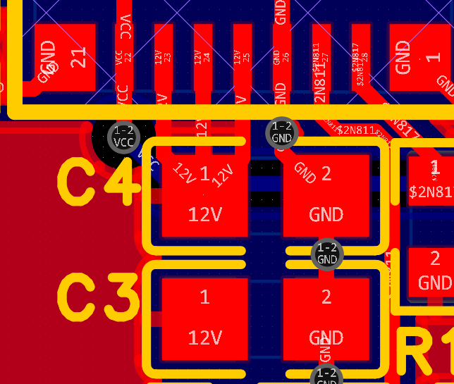 输入和输出的电源引脚均采用布线的方式连接到电容焊盘上,GND引脚连接到电容焊盘上或者布线走到GND网络铺铜区域。