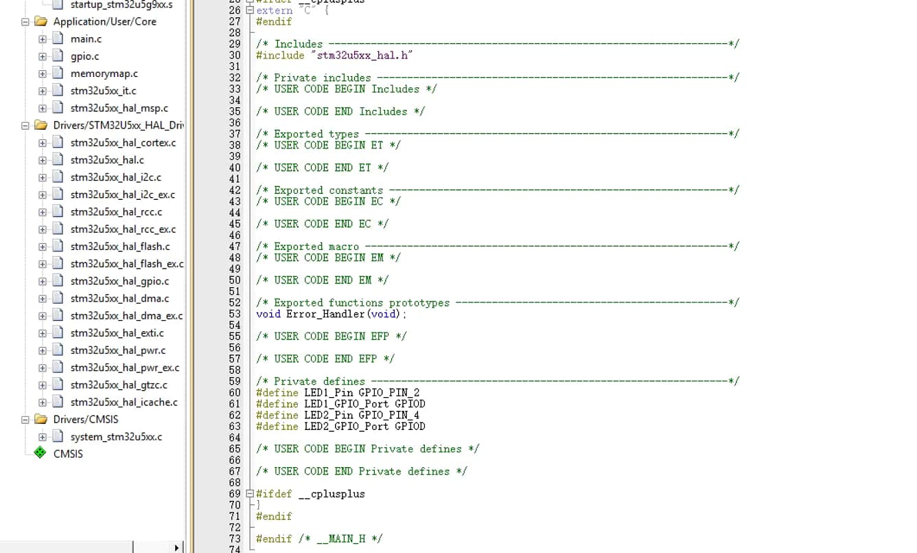 使用STM32cubemx和MDK_ARM构建工具链,基于STM32的U5 cube包,使用HAL库构建GPIO调试的代码
