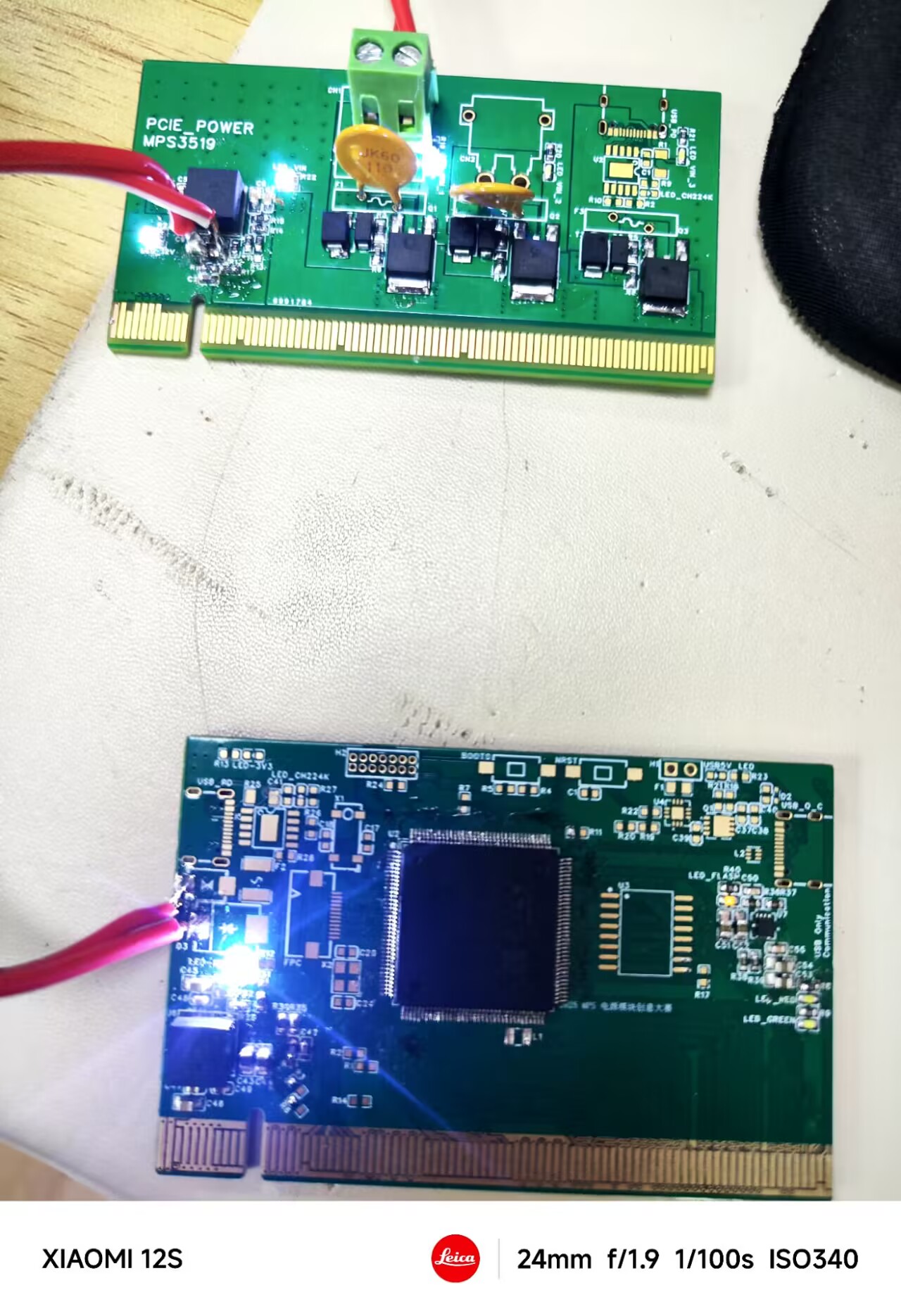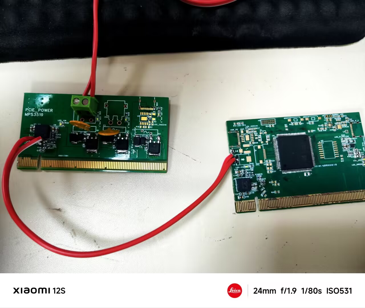 由于出差频繁,加之到年底了,PCIEx16接口的底板没来得及绘制,先用飞线来连接PCIE_AI图形加速卡和PCIE_POWER电源卡。