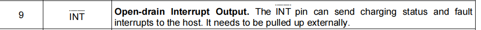 MP2762A芯片的这个INT脚是状态指示的吗,我把它接入一个低有效的led灯,关机未充电的状态下灯一直亮着,想了解一下这个脚的使用,是否可作为状态指示相关,求解答