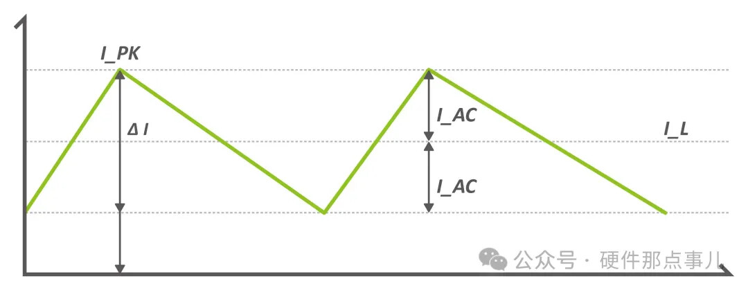 ΔiL是电感电流的峰峰值,Idc是电感电流平均值,如果Iac是电感电流的峰值,那么上面的公式可以改写成: