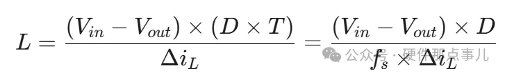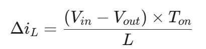 以Buck为例,在开关管导通的Ton期间,施加在电感上的电压VL为Vin-Vout。电感电流从谷值线性上升到峰值。那么电流的上升量为: