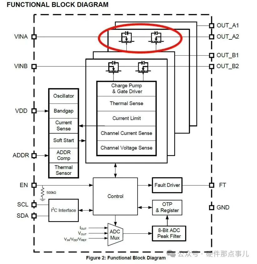接下来我们以MPQ77240FS-AEC1为例,来讲讲这个问题,MPQ77240FS是一款由MPS设计制造的四通道、智能型高边驱动开关,专为汽车应用设计,并已获得AEC-Q100认证。其内部的采用了Back-to-Back MOSFET配置使其能够耐受高达26V的对电源短路测试电压,很多人对这个对电源短路测试有点误解,HSD输出对电源短路有什么问题呢?HSD的电源是12V,输出对电源12V短路了,那顶多没电流流过呀,大错特错!