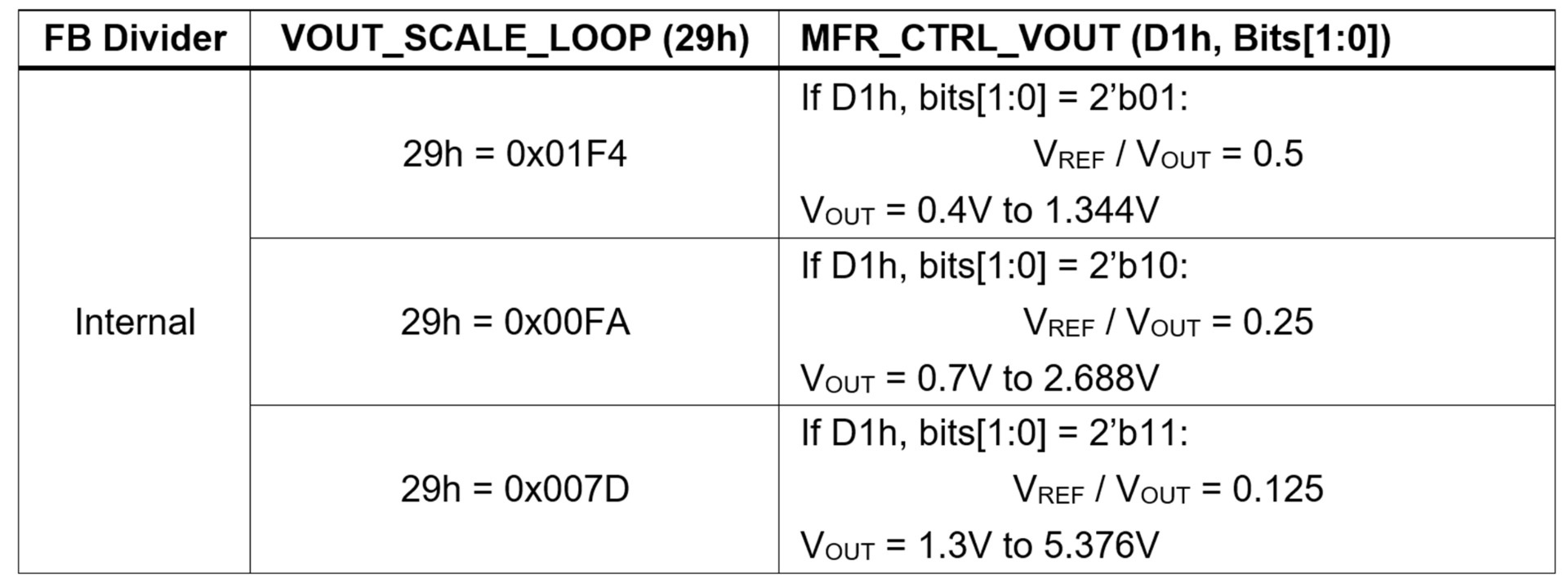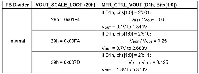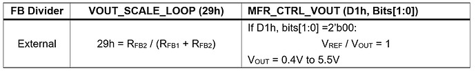 | VOUT_SCALE_LOOP | 0x29 | 0x14A | 0.33 |