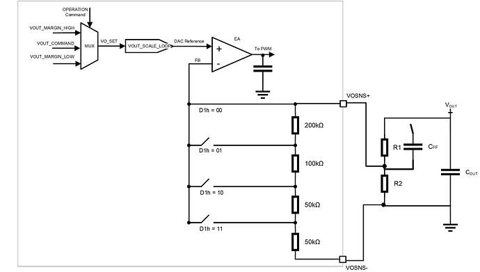 | VOUT (V) | R1 (kΩ) | R2(kΩ) | CFF (nF) | VOUT_SCALE_LOOP (29h) |