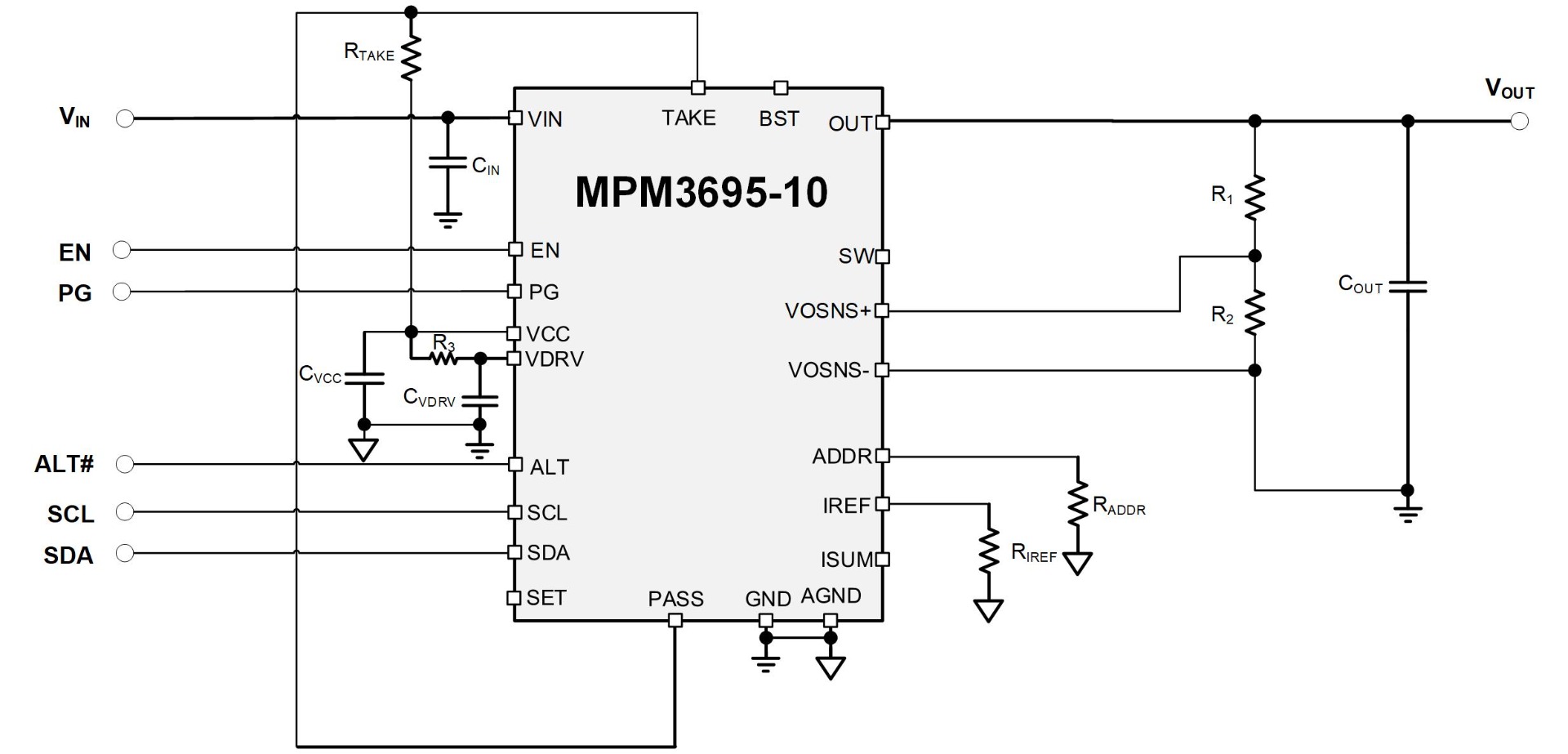 MPM3695系列(MPM3695-10、MPM3695-20、MPM3695-25 和 MPM3695-100)可提供高达 800A 的电流,具备超快瞬态响应和出色的电压容差。设计人员可根据应用需求选择使用外部或内部分压器,以实现高度灵活性。内部电阻分压器具有紧凑、集成、易于使用的优势,适合空间受限但性能要求高的设计;外部分压器则提供更高的灵活性、可定制性以及更优的热管理能力。