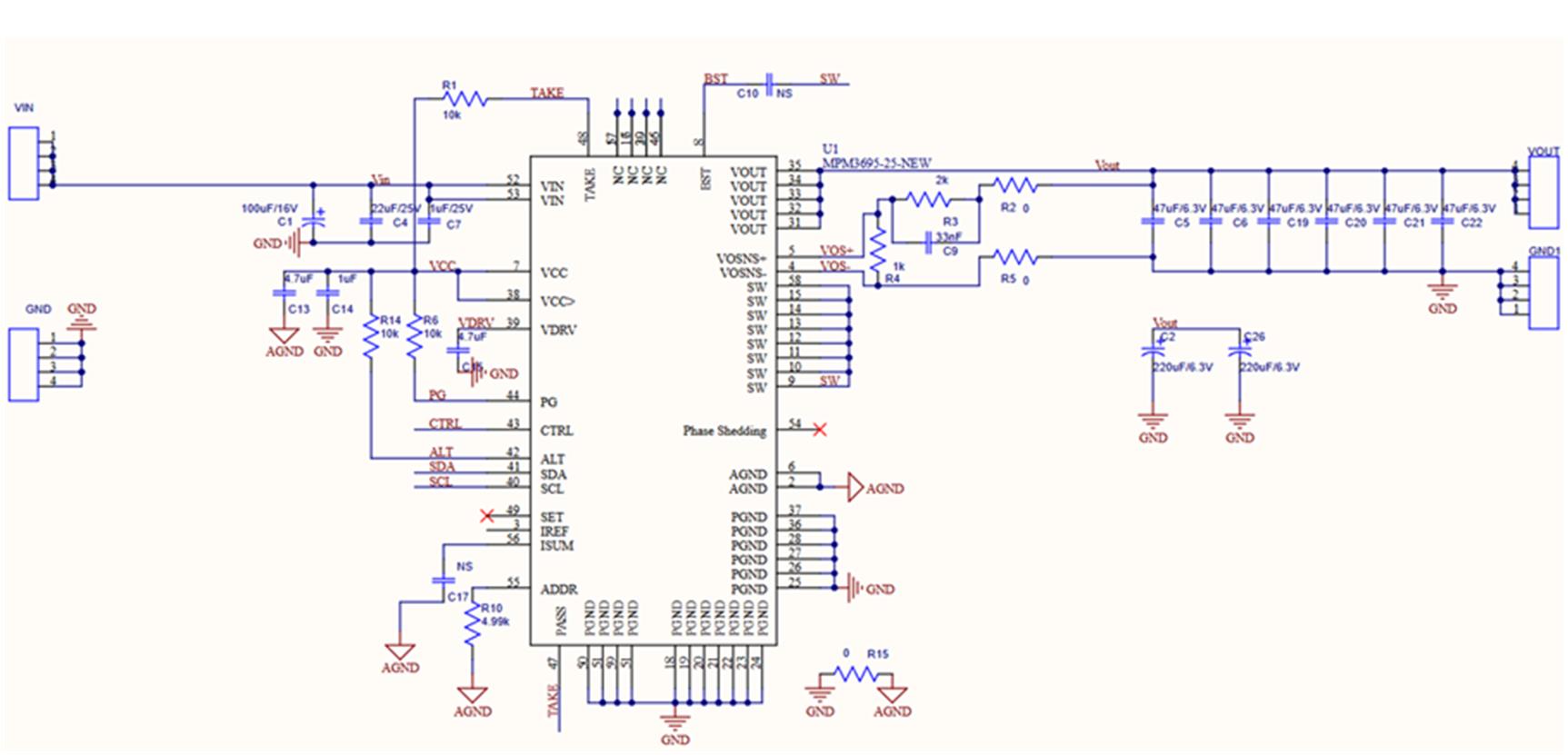 确保 VOSNS+ 和 VOSNS- 引脚直接连接到 VOUT 采样点(见图 4)。在此场景下,R3 设置为0Ω,图 6 中的 R4 已移除。