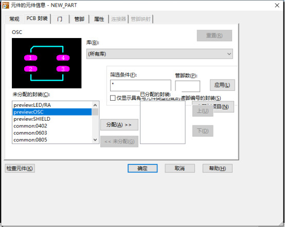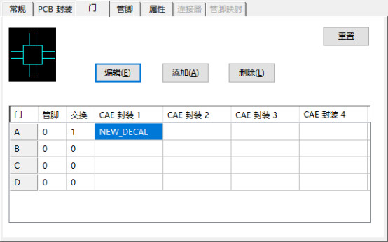 门封装也是一样,将前面画好的CAE封装给对应到门封装内,这里可以选择四种CAE封装,不过通常选择一种即可。
