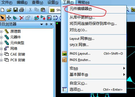 然后就是PCB封装,它是在编辑电参数的菜单栏中,不过对于PCB封装的设计是在PADS Layout软件中进行。