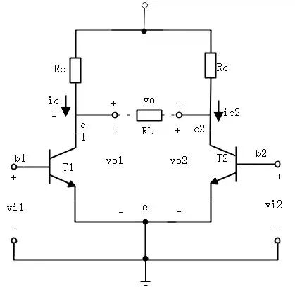 差分放大电路是模拟集成运放电路常常会采用的输入级电路形式,它由两个对称的基本放大电路组成(输入电压是相反的),输出极也就是发射级公共电阻耦合构成。
