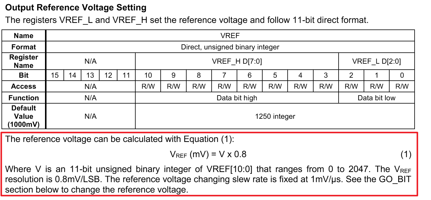 你好,看手册是可以通过调整VREF_L和VREF_H实现操作内部Vref的,加上外部7.8的分压比是可以实现1~12V的电压输出的。