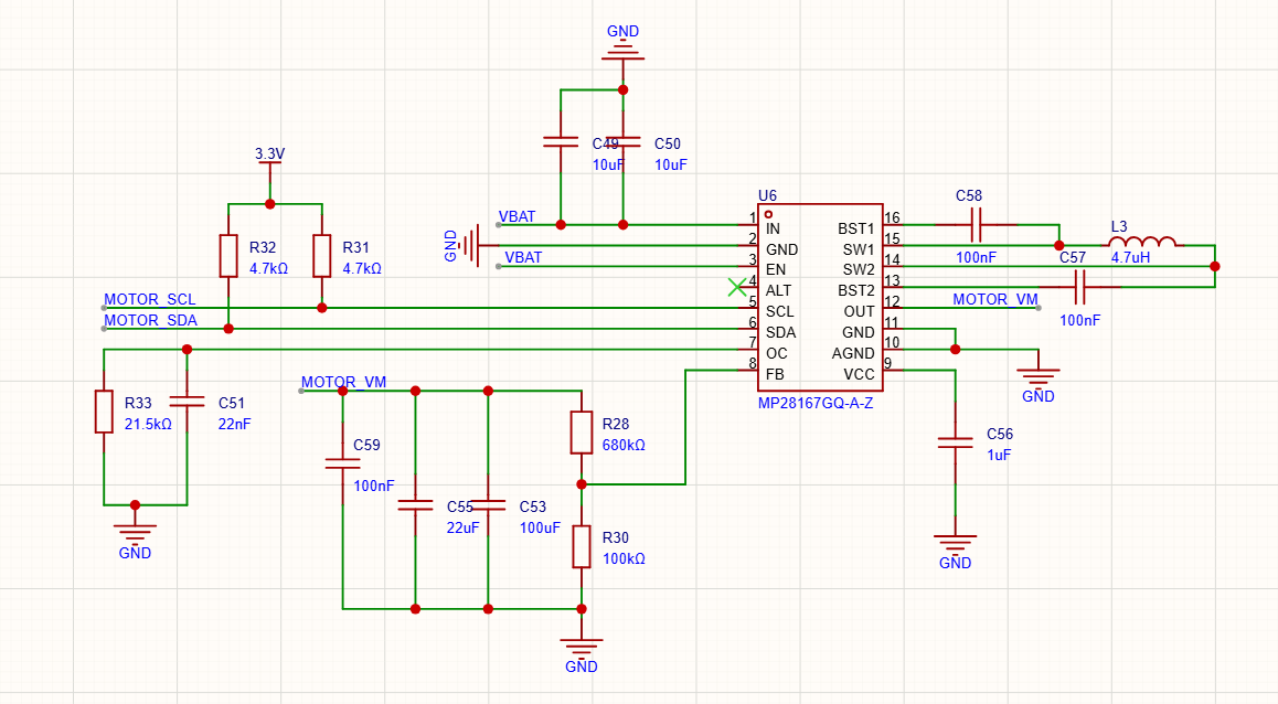 2、FB连接电阻680k和100k,计算出分压比约7.8,使用IIC发数据调节输出不同电压,Vref调节范围:0.08V~1.637V,结合分压比7.8,理论上是能满足输出范围1V~12V的电压输出调节。