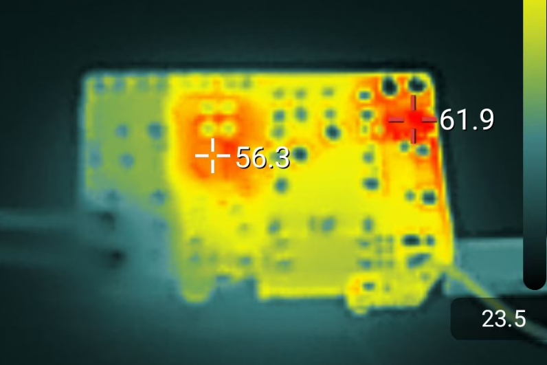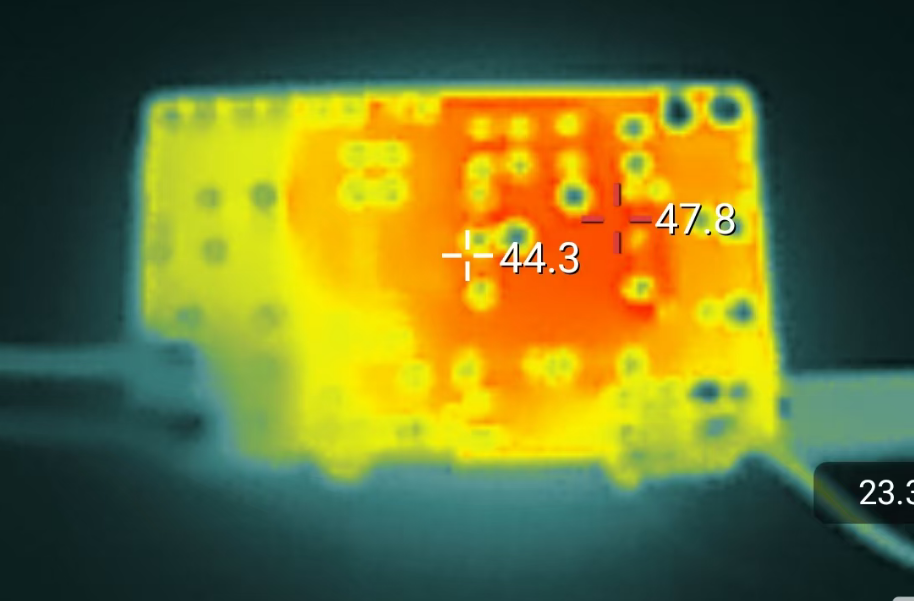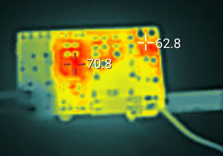 本次测试选用常规供电、PD诱骗模式5V/3A满载情况下的板载各部位的发热情况,不同使用时间的发热趋势测试。