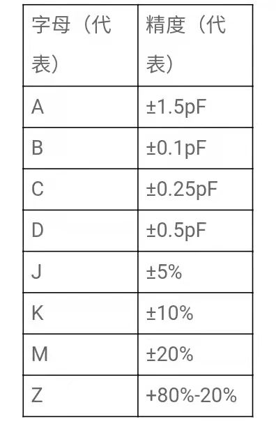 在记忆上也比较方便,按照英语字母表的顺序来划分,顺序越靠前,电容精度越高。