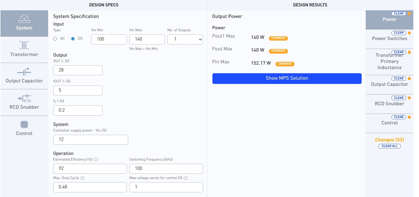 在本次设计中,我使用了MPS Flyback Design Tool进行反激电源方案设计与参数验证。