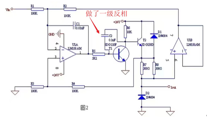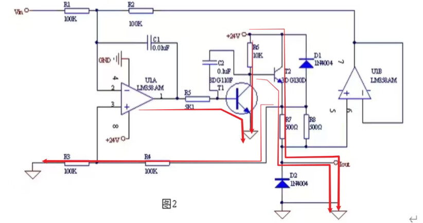 熟悉恒流源的朋友一定可以一眼看出这个恒流源的拓扑类型,没错这个是一个Howland电流源的变种。关于Howland电流源之前也有写过几期。例如下面一个就是我之前抄的一个4~20mA上的Howland恒流源: