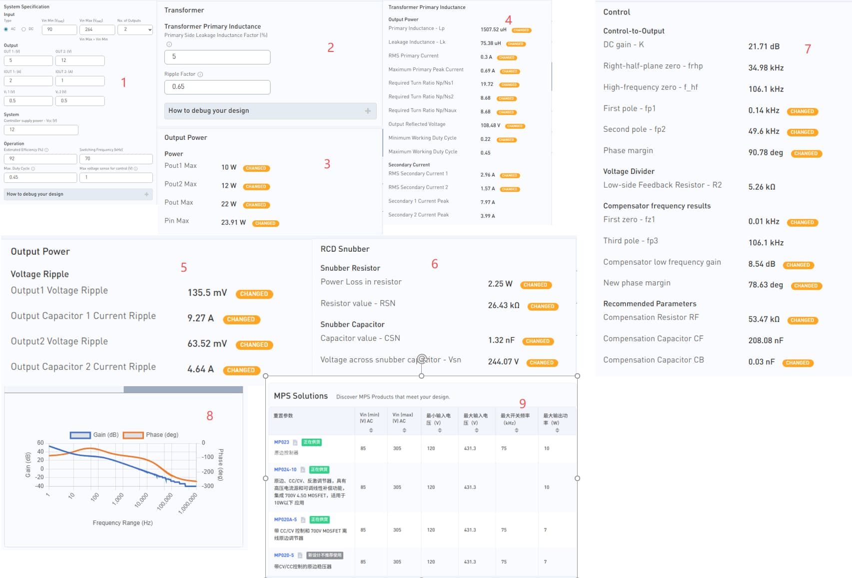 控制页把补偿和环路信息也给出来了。很多在线工具只会给磁件和应力,不会把补偿网络一起给出来。这里给出了环路信息,可以给工程师更多的注意信息。