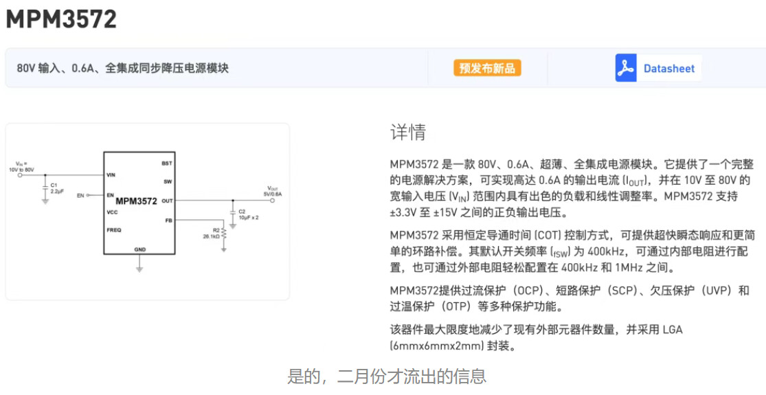 MPS 最近出了一颗新品,怎么才看到呢!我也想赶紧搞了几颗;型号是MPM3572。