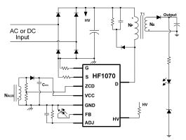 针对更高电压需求,MPS推出的HF1070,则是集成1700V SiC功率管的隔离反激变换器。它采用第三代半导体技术,通过变频设计实现超宽输入电压范围内的高效率工作,支持轻载、QR和CCM模式。单芯片方案集成了丰富的保护功能,极大简化了外围电路,可节省散热器并缩小电源尺寸。该产品适用于三相电表、工业变频器、新能源辅助供电等需要高压隔离的严苛场景。