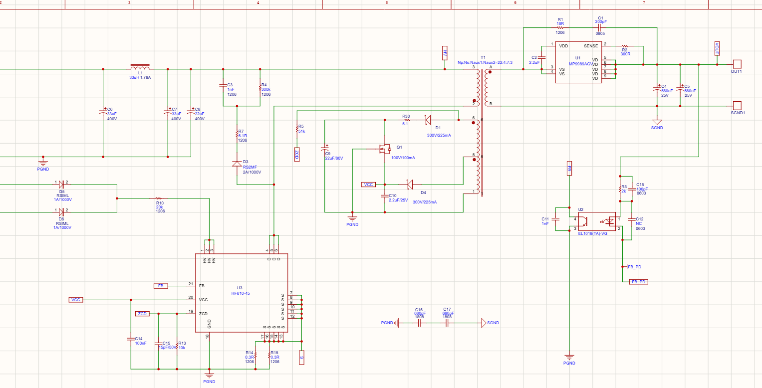 HFG610-45 是一款高集成度准谐振 (QR) 反激式控制器。该器件与GaN HEMT共封装,可实现高性能和高频设计。与传统 QR 反激式稳压器不同,HFG610-45 具备频率折返功能,可确保全负载范围内的高效率。