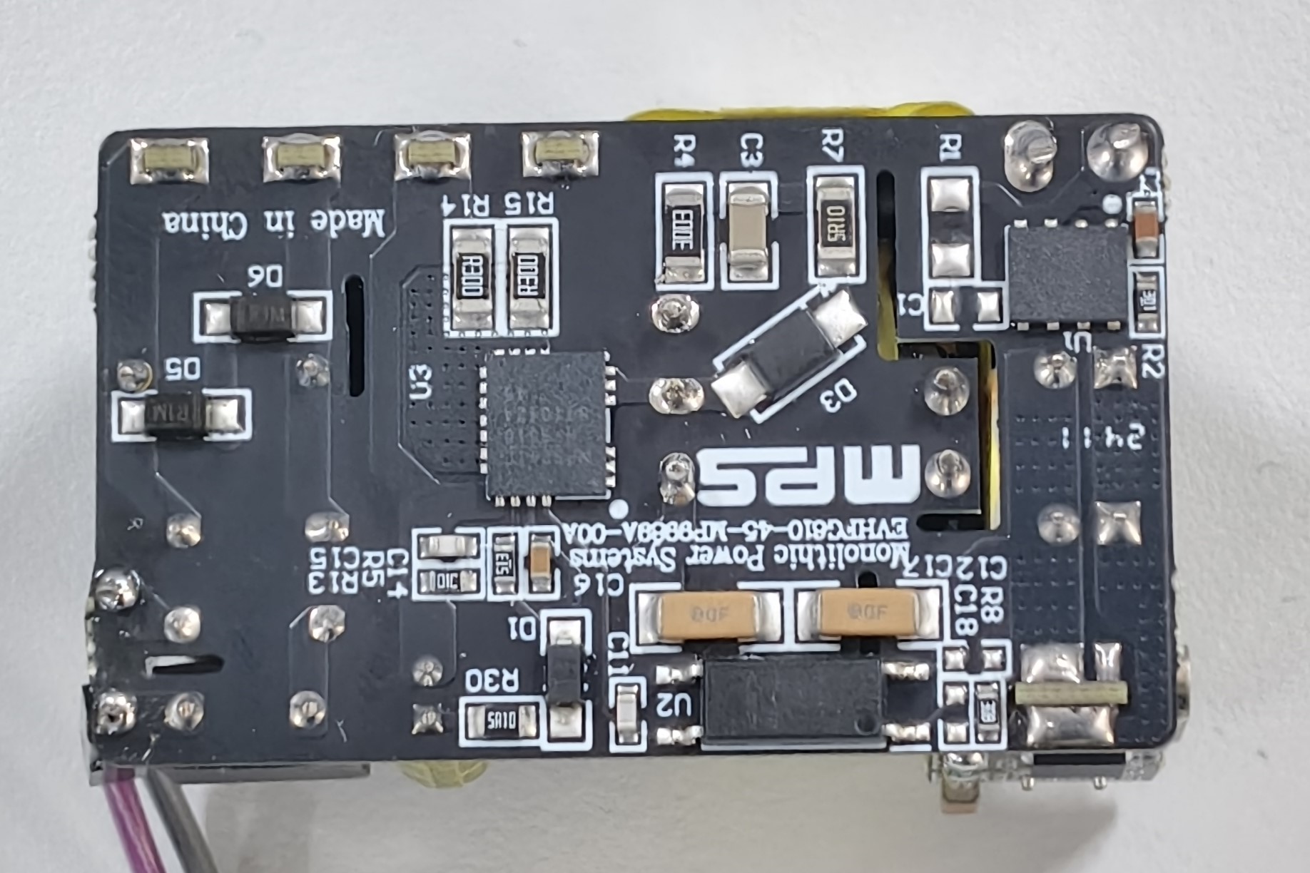 EVHFG610-45-MP9989A-00A 评估板用于演示 HFG610-45 和 MP9989A 的功能。该板尺寸小巧,功率密度高,其电气规格非常适合手机和电脑电源适配器。该板具备超低空载功耗(<30mW),整体效率高,符合美国能源部 (DOE) VI 级和欧盟委员会 (CoC) Tier 2 标准。